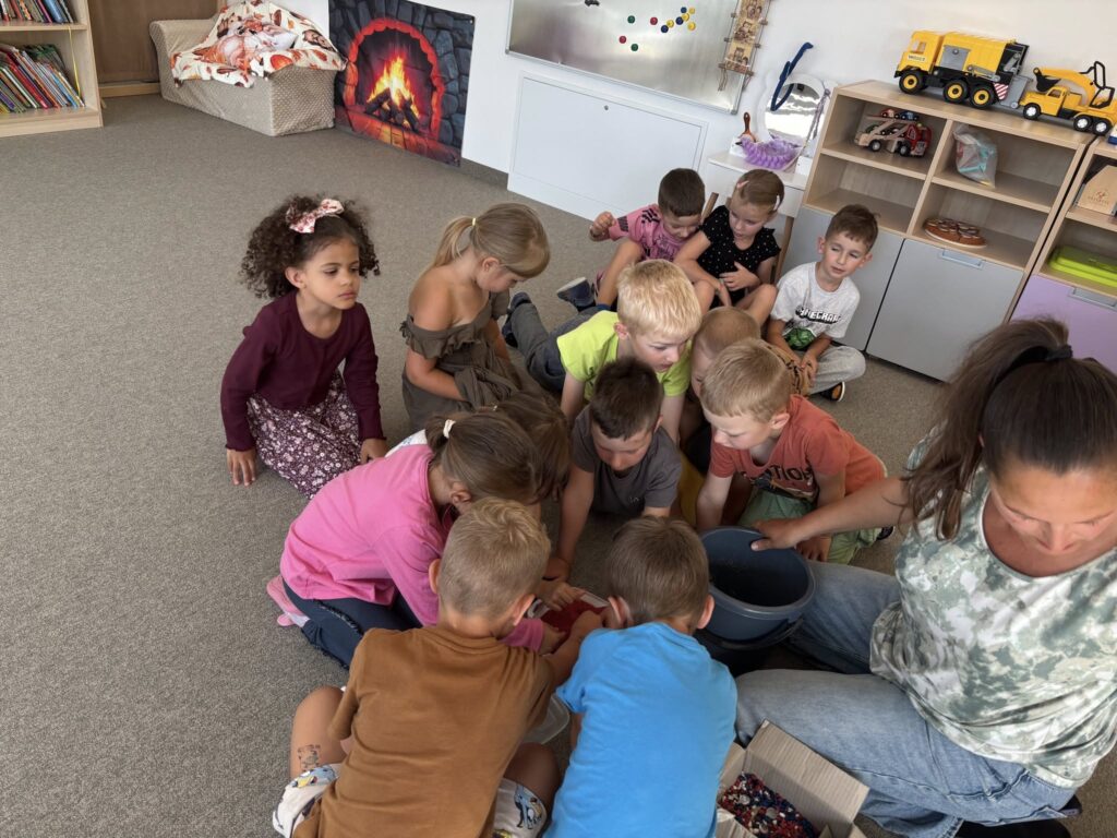 V pondelok 22.9. zavítala do našej škôlky milá pani, ktorá spolu s deťmi založila akvárium. Deti pozorovali, ako sa pripravuje prostredie pre život pod vodou, a s radosťou pomohli pri sadení vodných rastliniek.