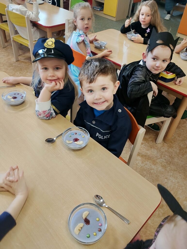 Vo štvrtok 12.2. bolo v našej škôločke opäť výnimočne veselo. Triedy sa premenili na farebný svet plný balónov, masiek a radosti. Karnevalovo vyzdobené triedy vítali deti oblečené vo vytúžených maskách – stretli sme princezné, superhrdinov, rozprávkové bytosti, zvieratká aj ďalšie originálne postavičky. Pani učiteľky pripravili pre deti zábavný program plný hier, tanca a súťaží. O sladké potešenie sa postarali tety kuchárky s usmievavou kašou a rodičia prispeli chutnými dobrotami. Karnevalový deň sa niesol v znamení radosti, pohybu a dobrej nálady, všade sa ozývala hudba a radostný detský smiech.