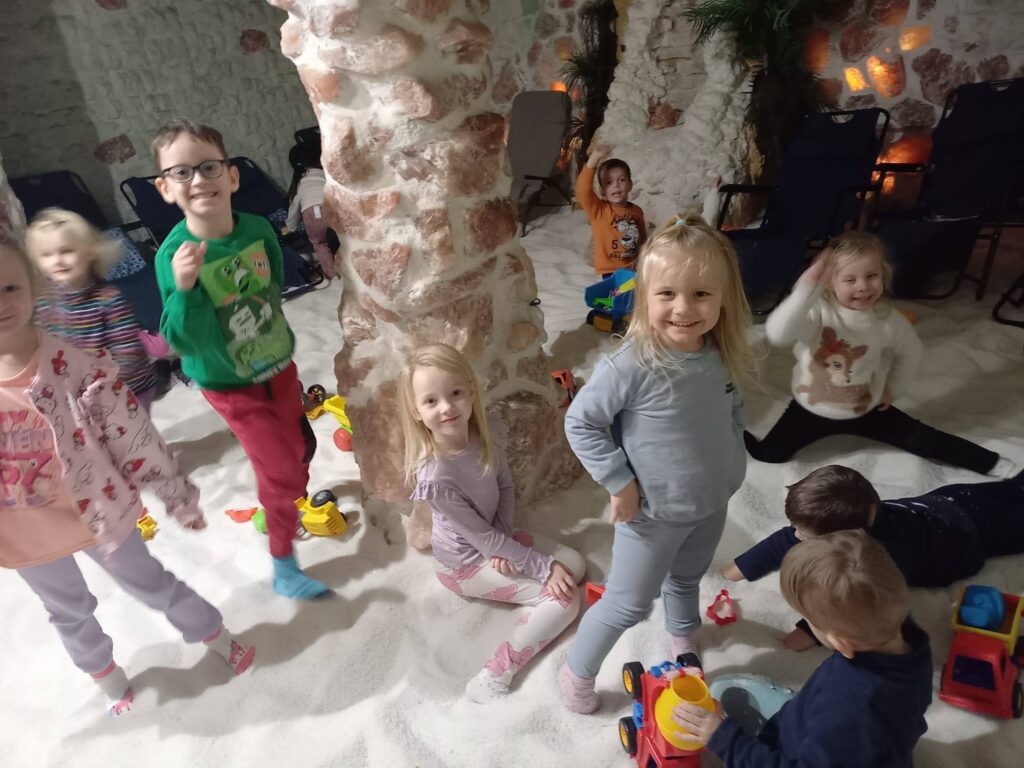 navštívili soľnú jaskyňu. Pobyt v nej má priaznivé účinky na dýchacie cesty, kožu a podporu imunity. Predškoláci zasa strávili skvelý čas na klzisku a rozvíjali svoje korčuliarske zručnosti
